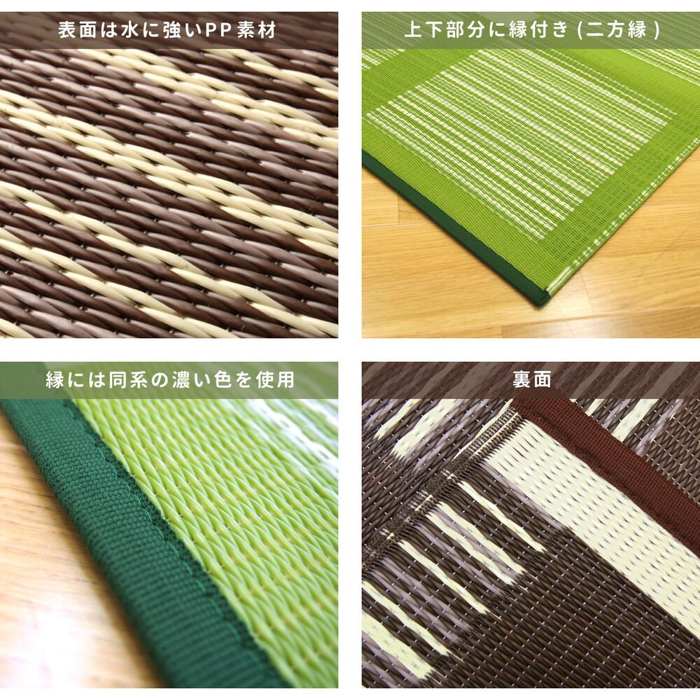 PP素材は水洗いできるので夏に海水浴などの休憩所等でもたびたび見かけますが、実は寒い東北ではビニール管内の空気層の保温効果を利用してあたたかく過ごすために冬に敷き詰めて使う家庭もあるそうです。昔ながらの和風テイスト柄で、懐かしい雰囲気が作れますよ。