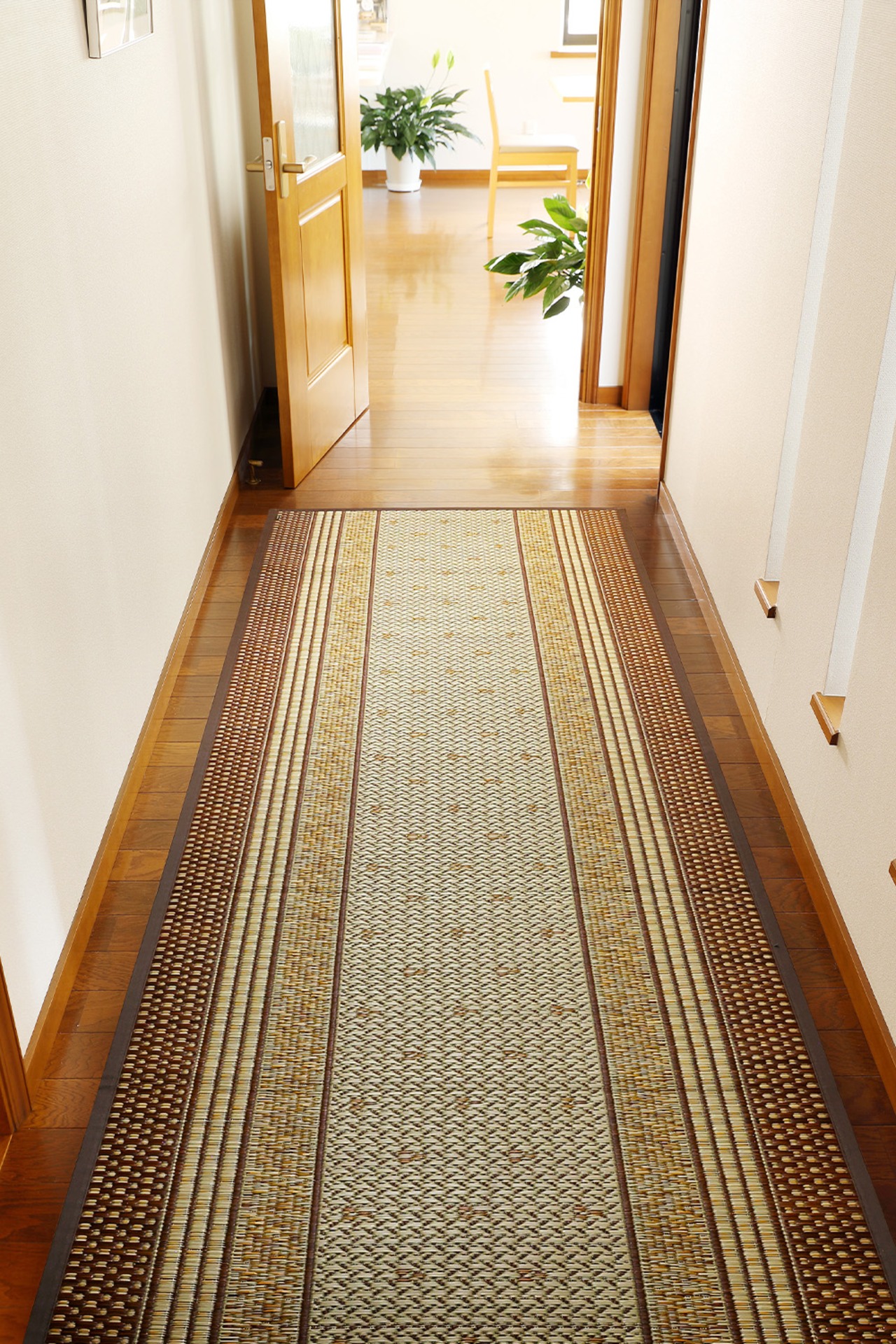 さりげなく季節の彩りを添えてお出迎え。厳選した国産い草で織り上げた重厚感漂うい草の廊下敷きマットです。