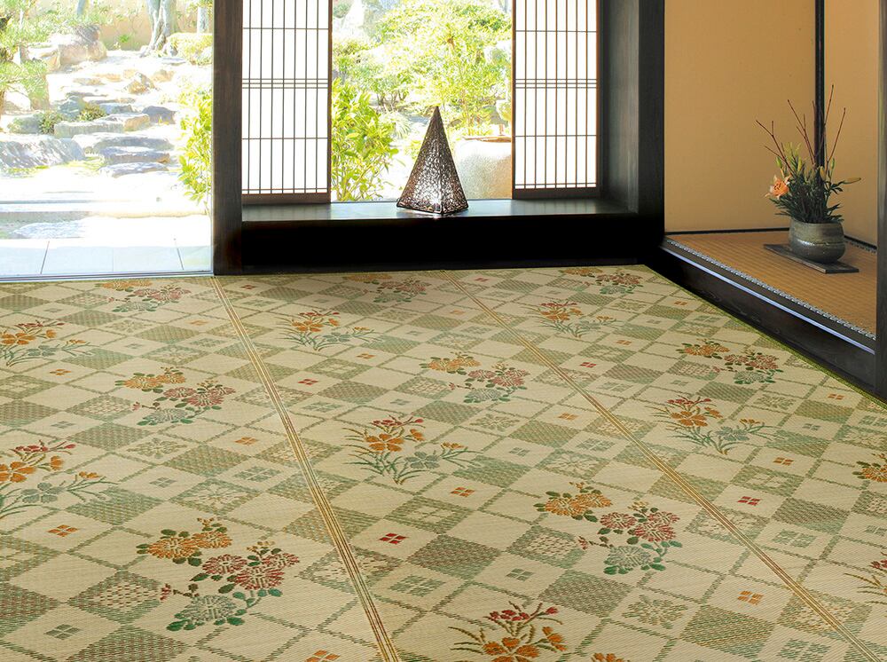 伝統的な和風デザインのい草インテリア。とっておきのスペ−スで、さわやかな空気に包まれて心身ともに安らぐ時間。夏の季節と上手につきあうために、自然を身近に感じる心地良さをアイテムにも生かしました。