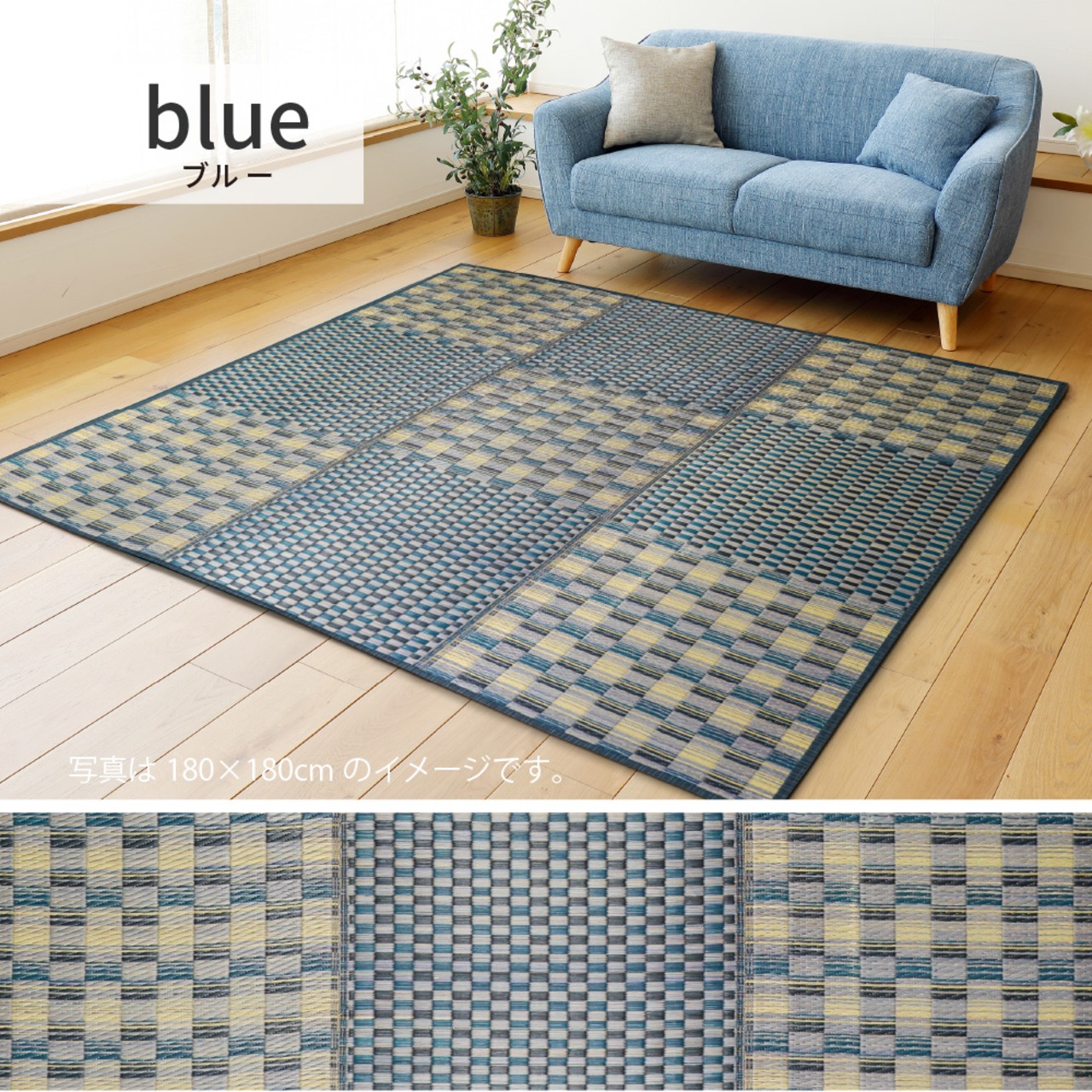 はっ水加工 ふっくらウレタン入り い草ラグ キハチ 約240×320cm ブルー