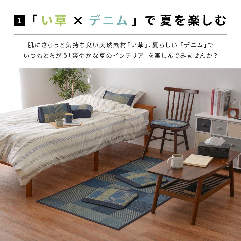 い草シートクッション デニムパッチ 約40×40cm ブルー