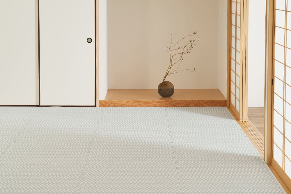 洗えるい草風カーペット パスラッシュ 江戸間6帖 グレー