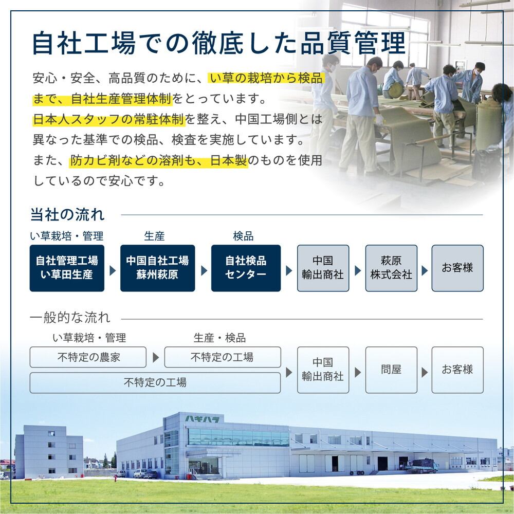 畳の素材である「い草」を気軽に味わうことができる敷き詰めタイプの上敷きです。