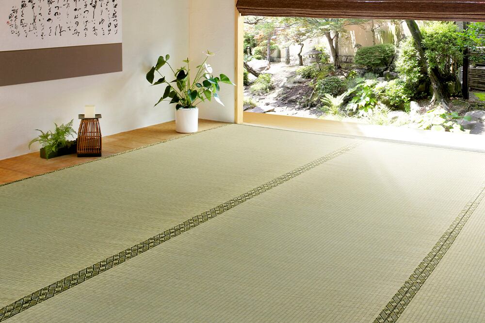 畳の素材である「い草」を気軽に味わうことができる敷き詰めタイプの上敷きです。