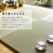 床に並べるだけで簡単に畳のスペースが作れる「置き畳」です。軽量なので女性1人でも取り扱いがラクラク。