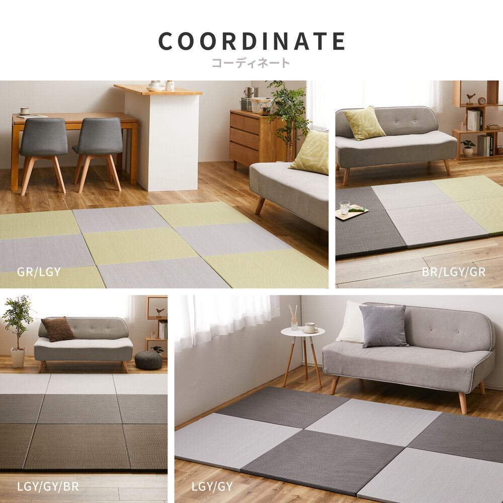 い草風置き畳 綾模様 約65×65×2.5cm 【9枚入】 ブラウン