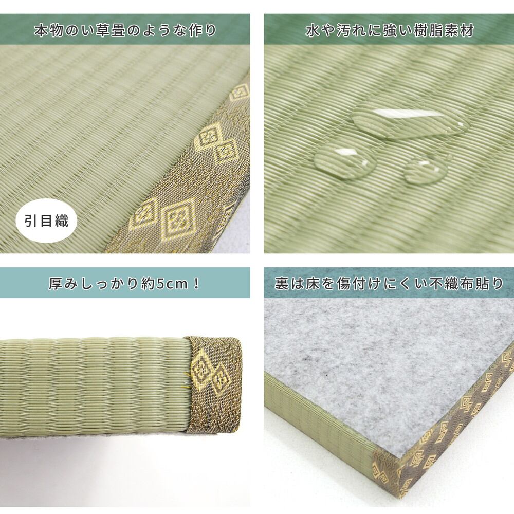 表がい草風の樹脂素材で、水に強く耐久性に優れた角座たたみ。