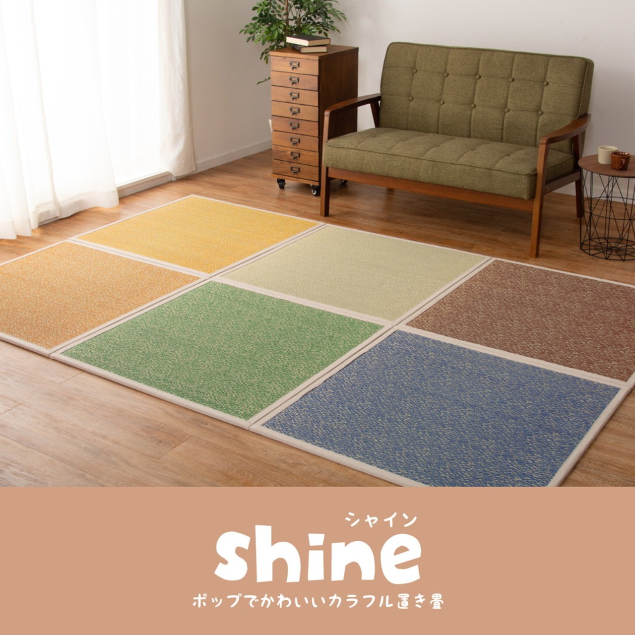 ポップでかわいいカラフル置き畳。シンプルでありながら存在感のある配色で、お部屋を明るく彩ってくれること間違いなし!新しい「い草の在り方」を感じさせてくれるこの「シャインシリーズ」で、オシャレで快適ない草ライフをお楽しみください。