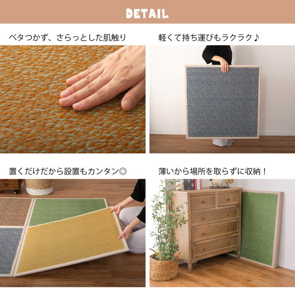 ポップでかわいいカラフル置き畳。シンプルでありながら存在感のある配色で、お部屋を明るく彩ってくれること間違いなし!新しい「い草の在り方」を感じさせてくれるこの「シャインシリーズ」で、オシャレで快適ない草ライフをお楽しみください。