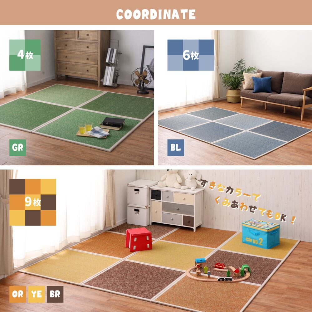 置き畳 シャイン 約82×82×1.1cm 【6枚入】 イエロー