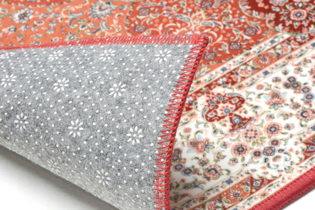 裏面は、不織布の上に滑りにくい加工を施しています。ドット柄の滑り止めに、強力な花柄の滑り止めをプラスしました。