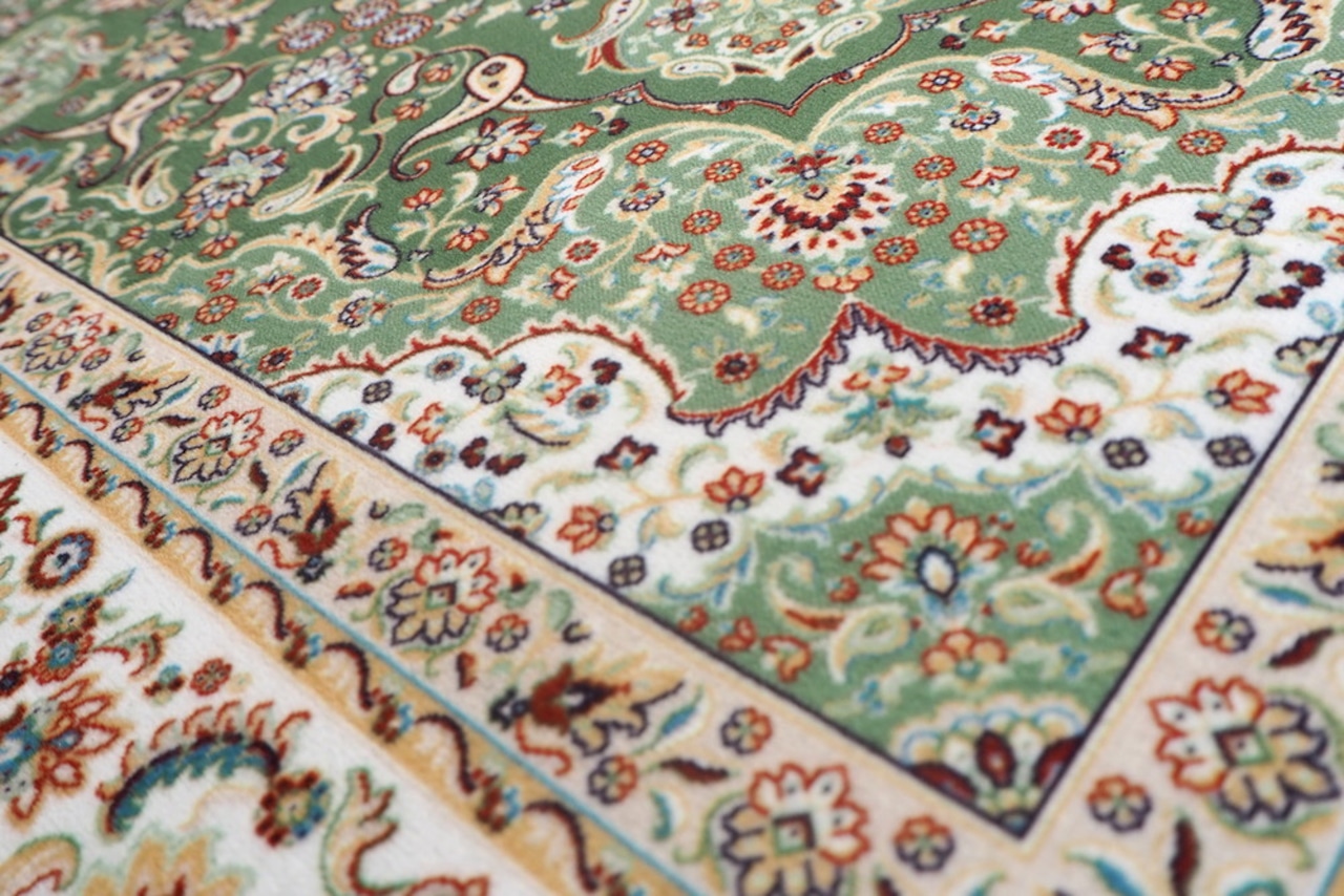 裏面は、不織布の上に滑りにくい加工を施しています。ドット柄の滑り止めに、強力な花柄の滑り止めをプラスしました。