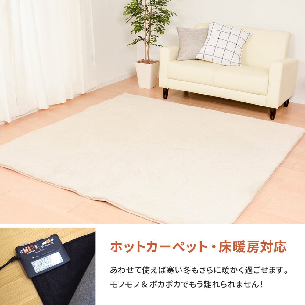 裏面は不織布で床を傷つけにくく、ホットカーペット・床暖房に対応。寒い季節には併せて使え、さらにあたたかく過ごせます。