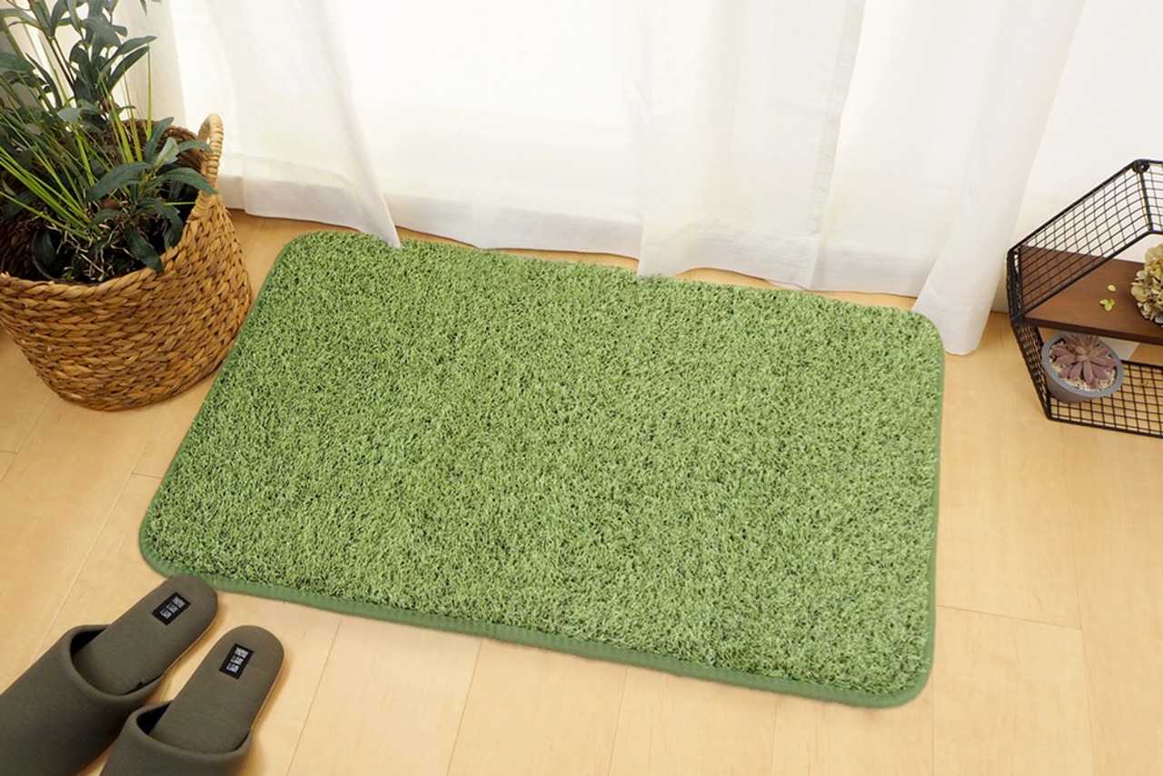 室内のお部屋にいながら、アウトドア気分を味わえる芝生風ラグ。