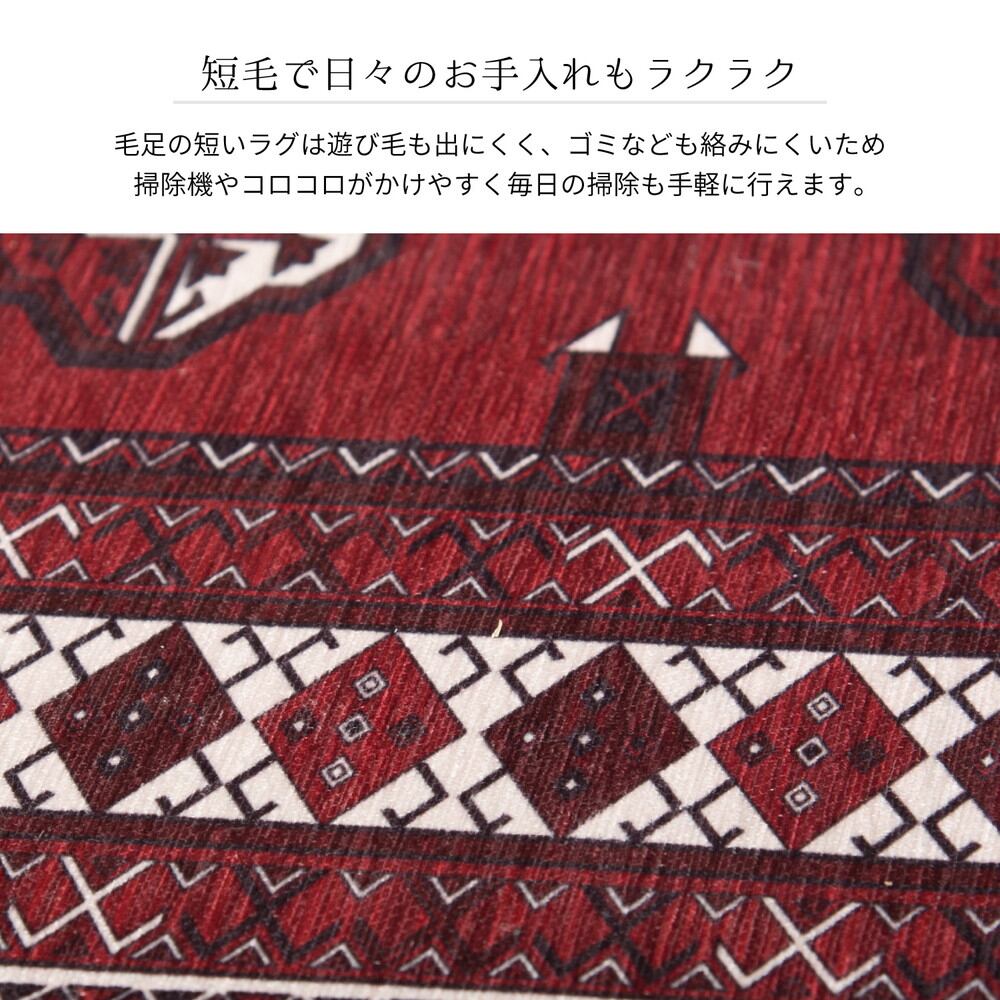 トルクメン絨毯とは、イラン北東部にすむトルコ系の遊牧民、トルクメン族によって昔から織り継がれている絨毯です。細かく丁寧な織り目としなやかで薄手に仕上げられるトルクメン絨毯は部族系ペルシャ絨毯の中でも細かな織りを誇り、正確なモチーフとシンプルな色遣いが垢抜けた印象を与えてくれます。そのトルクメンの風合いをプリントで繊細に再現しました!汚れても手洗いできます。裏面にはすべり止めが付いているので、ズレにくいのも嬉しいポイントです。