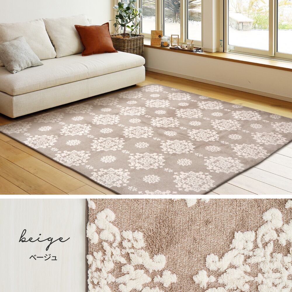 淡色遣いで派手すぎない、ささやかな可愛さ。模様に立体感を出すジャガード織りで、一味違う大人フェミニンなラグです。