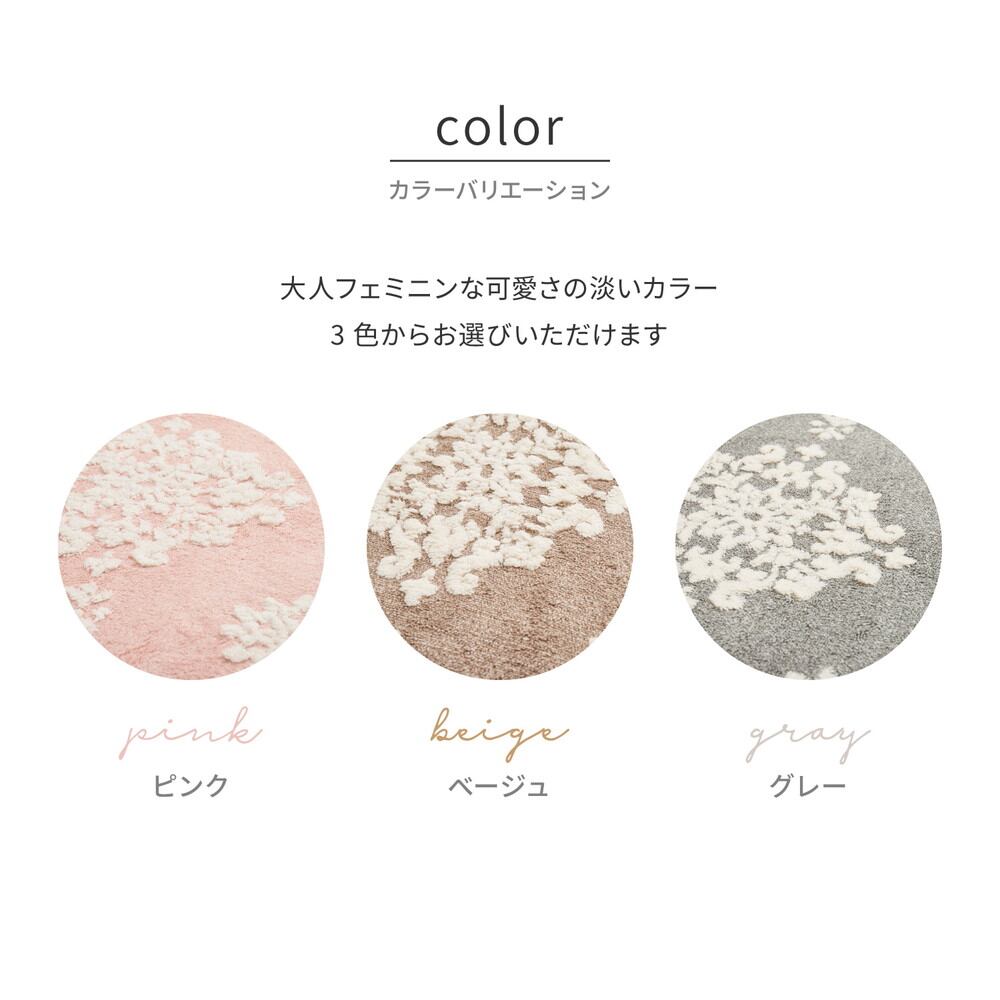 淡色遣いで派手すぎない、ささやかな可愛さ。模様に立体感を出すジャガード織りで、一味違う大人フェミニンなラグです。