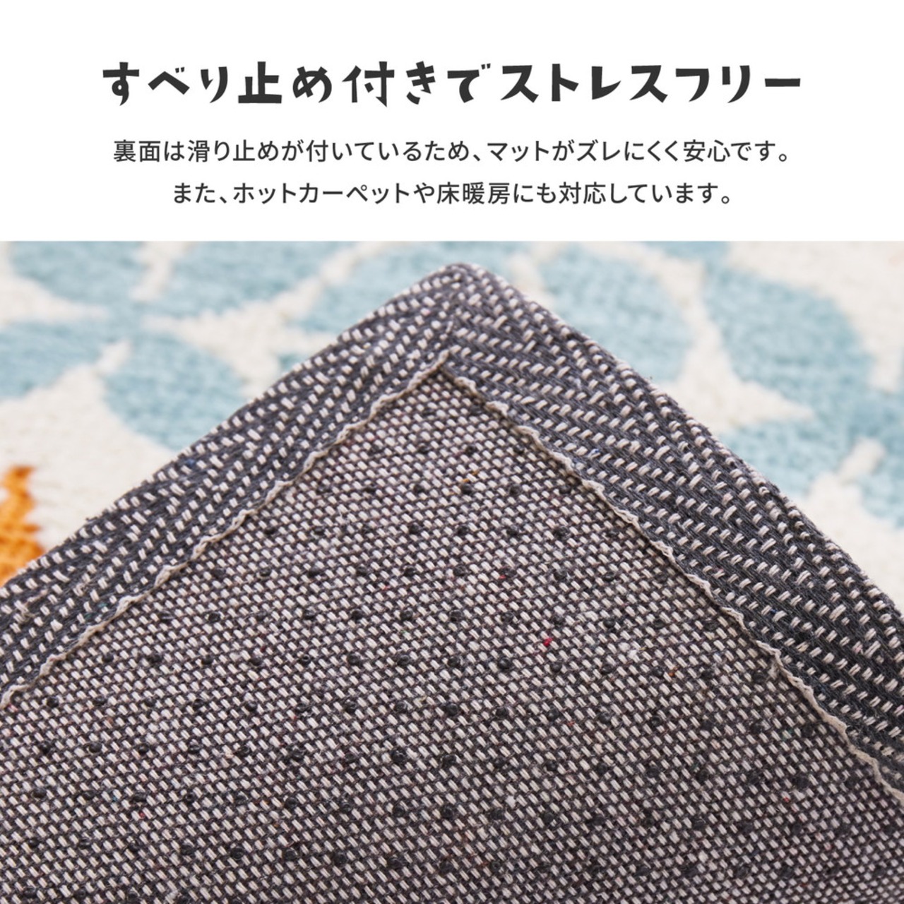 裏面は綿布貼りで耐久性も高く、滑り止め付きでマットがズレにくくストレスフリー。