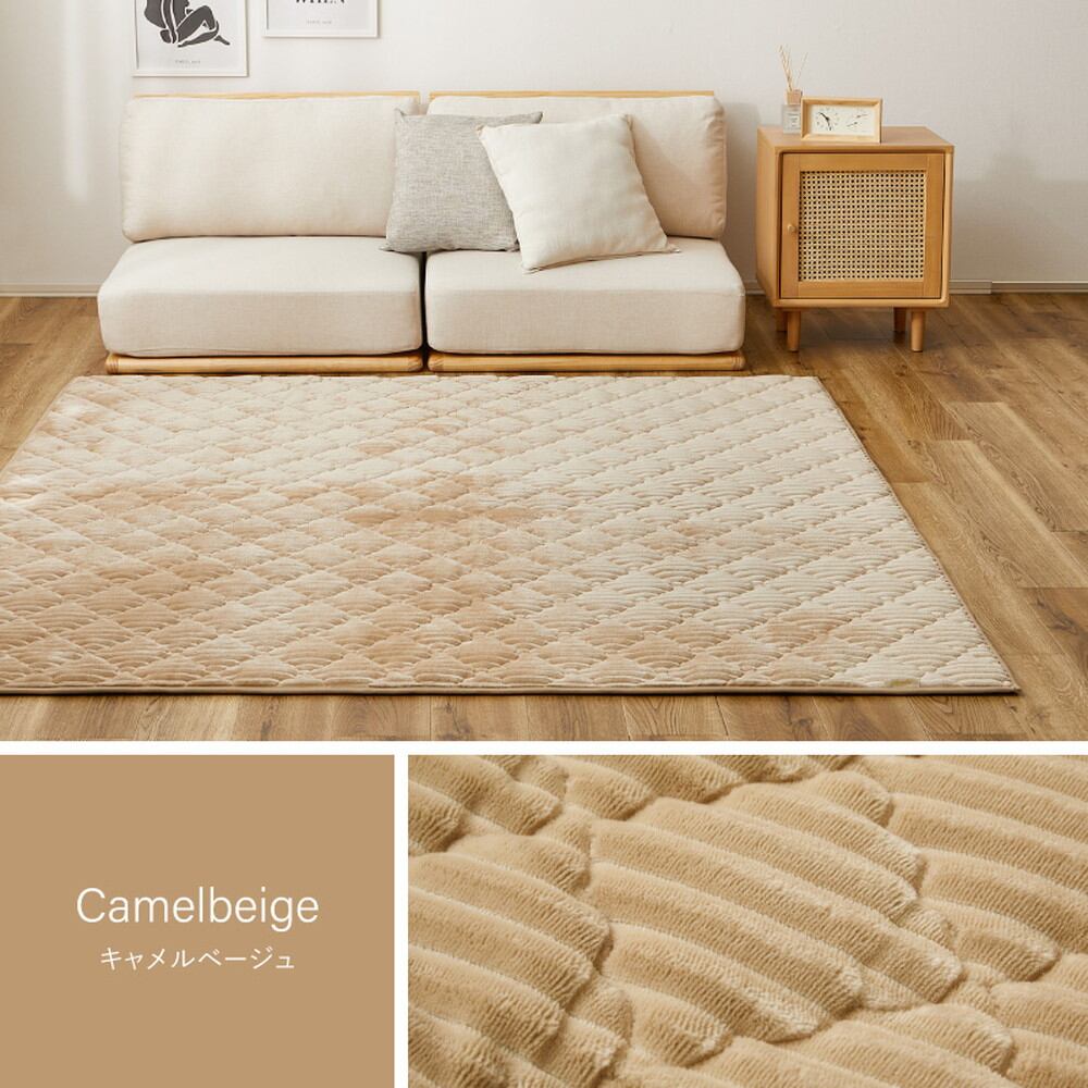 大人かわいいくすみカラーのふわふわラグ。短毛フランネルのなめらかなタッチと、ぽこぽことしたキルトが心地よい癒しの一枚に。中身をウレタンと綿を混合にすることで、ボリューム感を出しました。裏面には滑りにくい加工付きでラグがズレにくく、汚れても洗濯機で丸洗いできるから、小さいお子さまのいるご家庭でも安心してお使いいただけます。