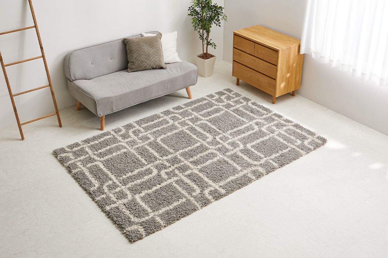 モダン柄のシャギーラグ