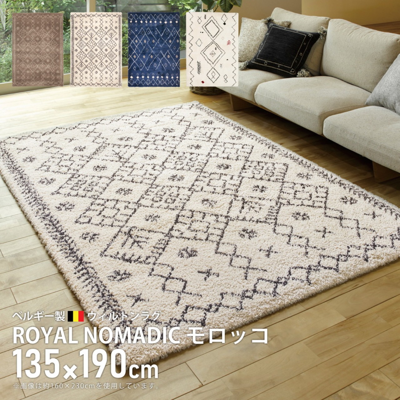 ウィルトンラグ ROYALNOMADIC モロッコ 約200×250cm (丸巻き) ブラウン