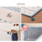 ナチュラルな生成りのベースカラーに、たくさんの願いが込められたギャッベの文様をデザインしました。四隅に付いたフサ(タッセル)でおしゃれ度アップ!