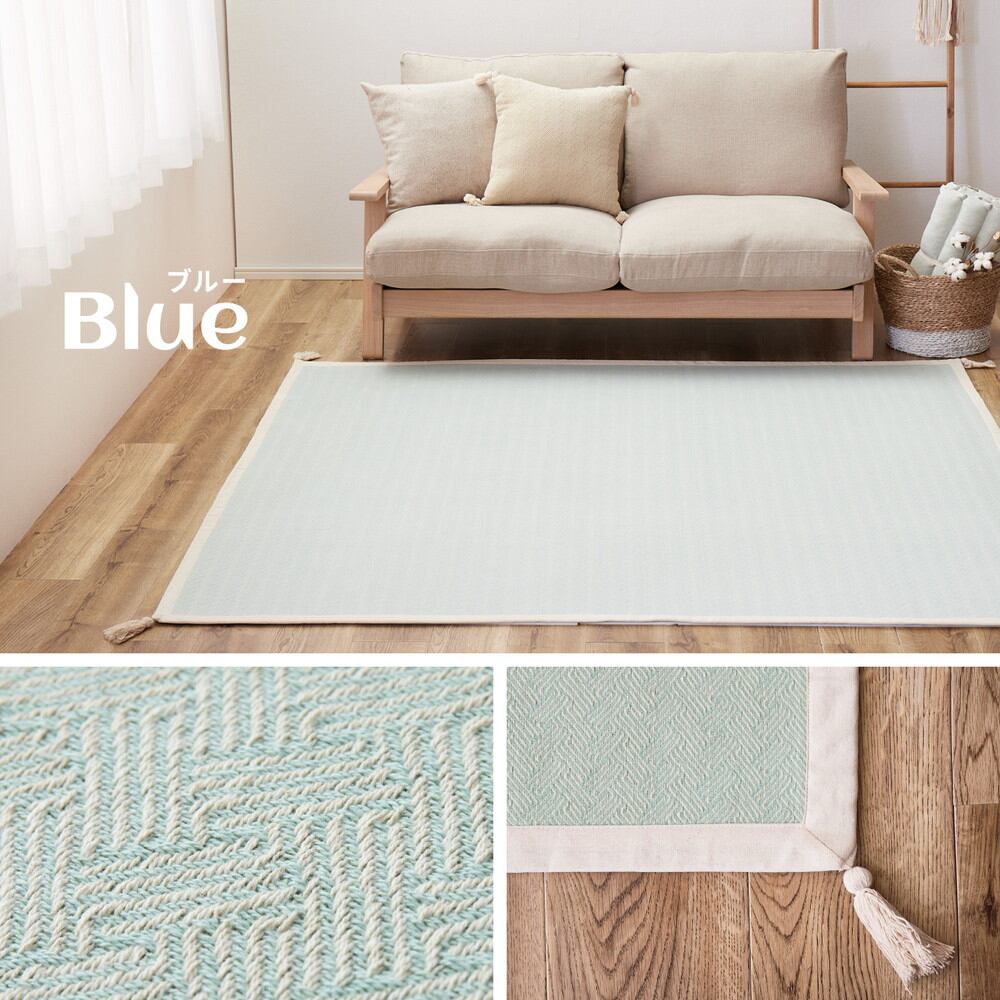 ざっくり感のあるコットンの心地よい手触りとやわらかな風合いが魅力のインド綿100%ラグ。天然素材で肌にやさしく、通気性がよく保温性にも優れたインド綿は、オールシーズン快適にお使いいただけます。