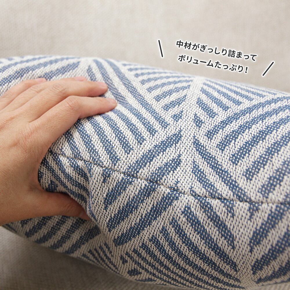 他の原産地の綿と比べ、ふんわりとした柔らかさがあるインド綿で作られたクッション。