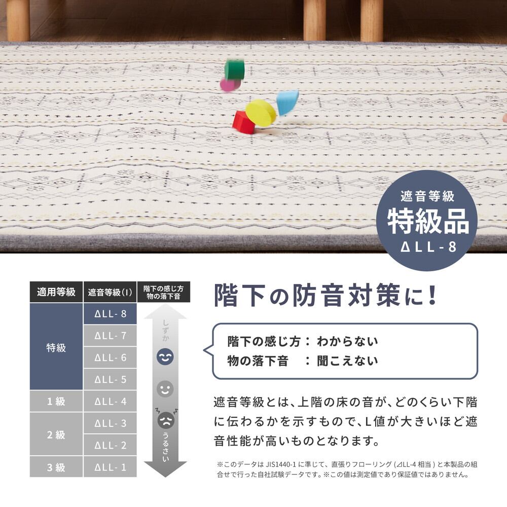 約18mmのウレタンを使用し、ふっくらとしたクッション性で床の硬さを軽減。また、裏面に滑り止めが付いているのでラグがズレにくく安心です。