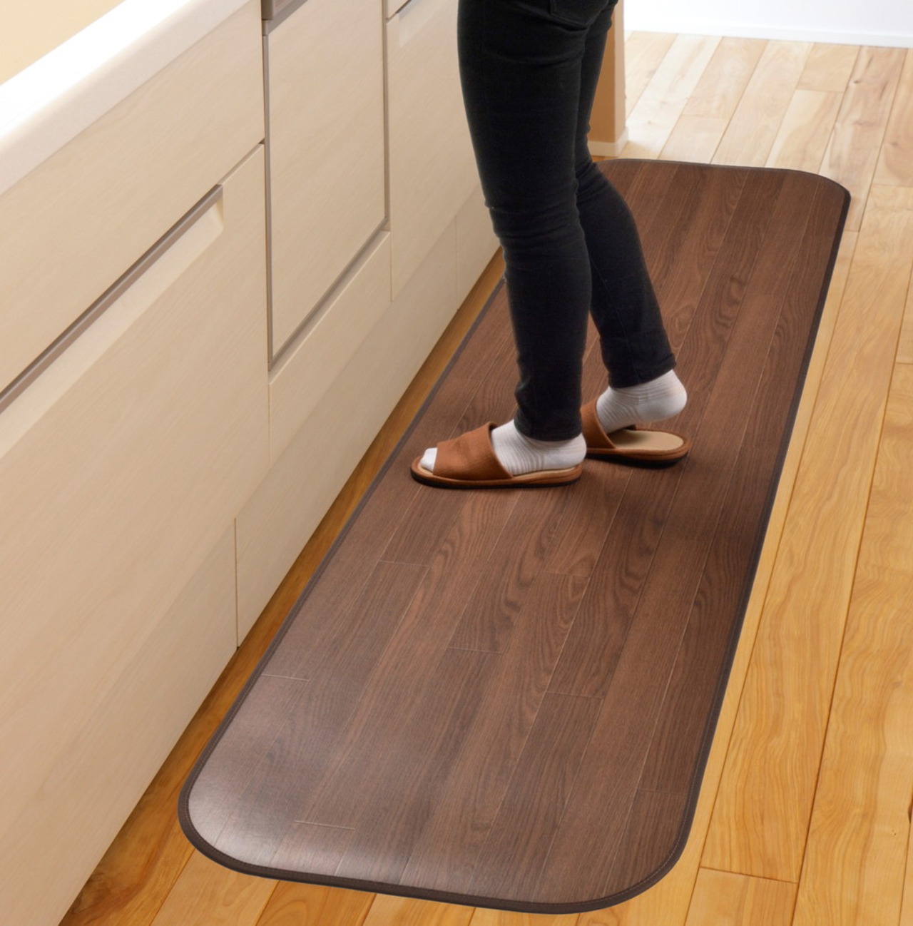 消臭・抗菌・撥水の機能をあわせもつ家族みんなにやさしい高機能な木目調フリーマット