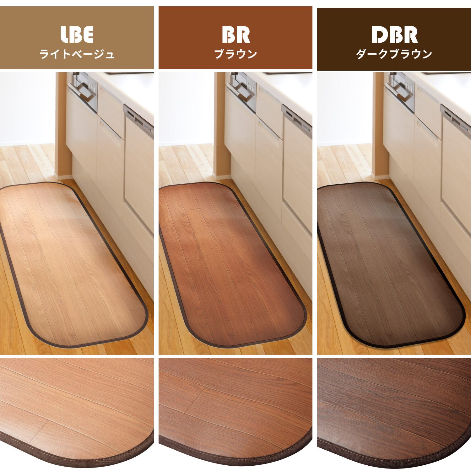 消臭加工付き 木目調フリーマット 約90×150cm ライトベージュ