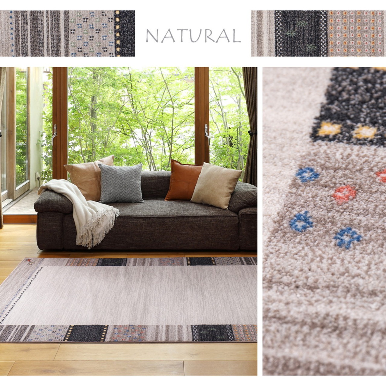 素材にはポリプロピレンを使用しており、丈夫で湿気を取り込みにくく、汚れが付きにくいという特徴があるので、小さなお子様のいらっしゃるご家庭でも安心してお使い頂けます。また、ヒートセット加工を施す事で形態やサイズの変化が少なく、ウールのようなやわらかく心地よい風合いが長持ちします。ホットカーペット・床暖房対応で、オールシーズンお使いいただけます。